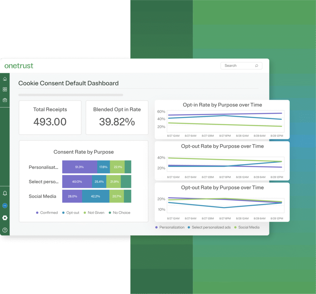 OneTrust’s onboarding and interface reflect its enterprise focus. When you first sign up, you’ll work with an account rep and implementation team (there’s no self-serve free trial for the full platform). The dashboard is modern and information-rich. For example, the CMP admin console displays cookie categories, consent rates by purpose, and quick links to policy editors. Images on the OneTrust site show a clean UI with charts and toggles – but in practice, expect many menus and options.